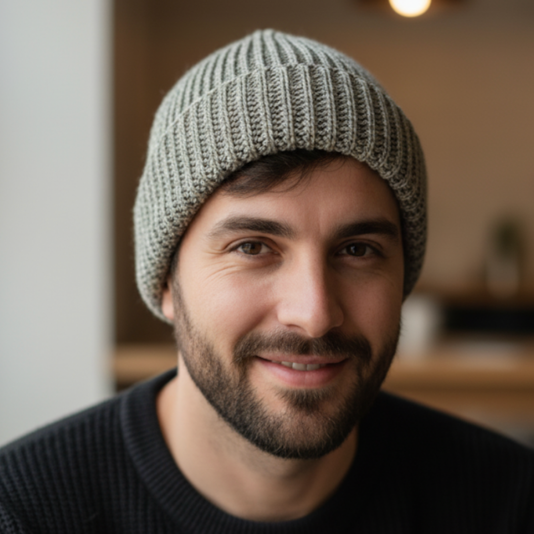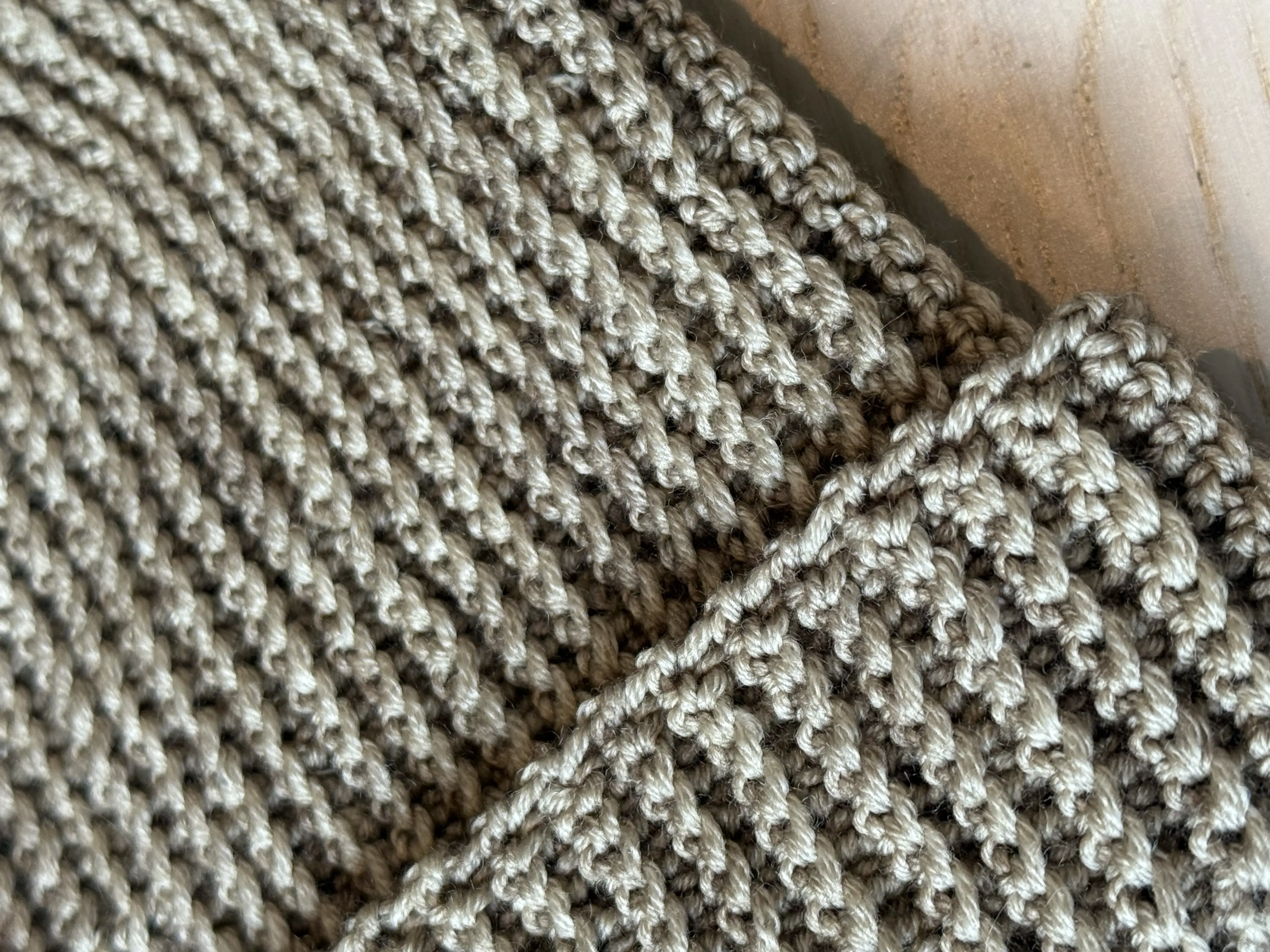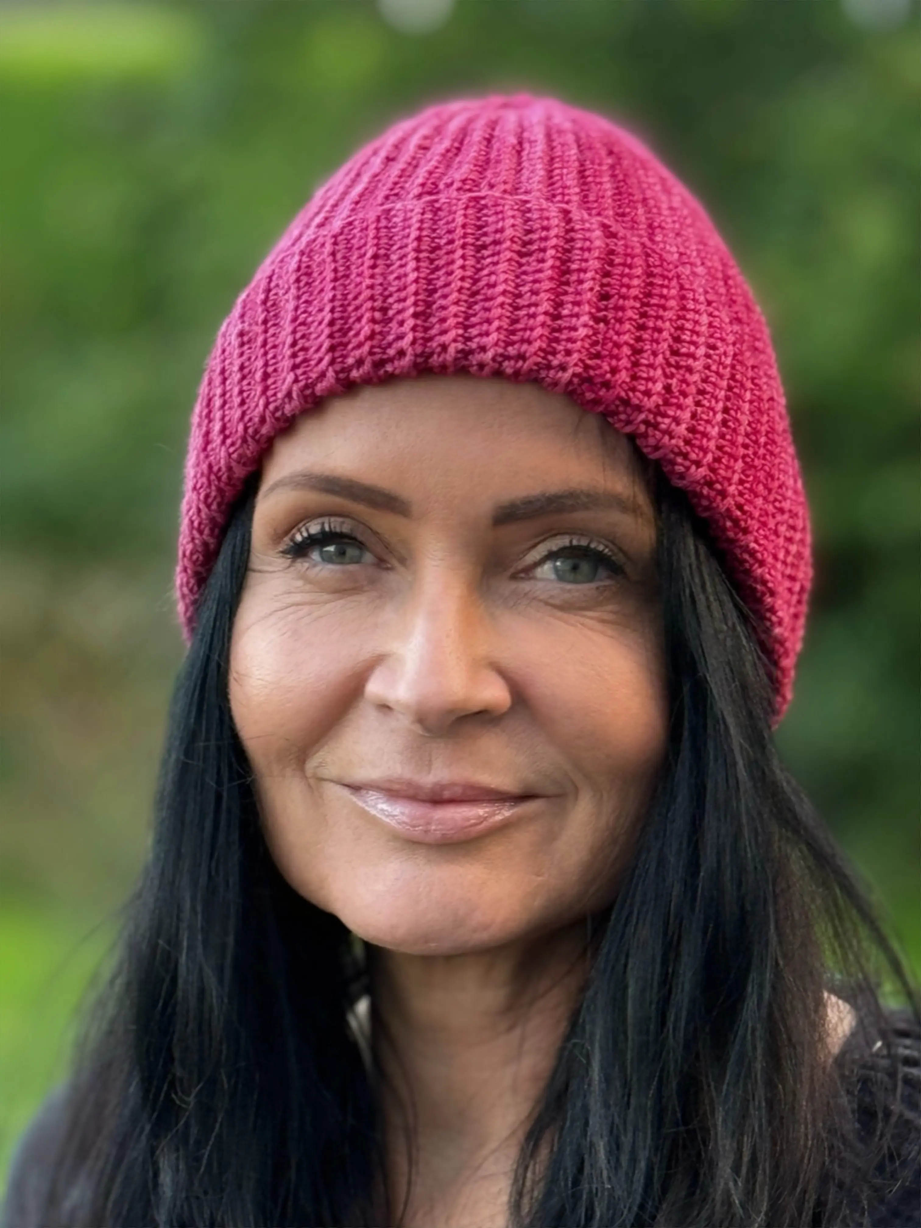 Mathilde-luen er en klassisk ribbelue heklet i fastmasker i bakre ledd. Enkel å hekle, elastisk passform og tidløs look med oppbrett. Last ned oppskriften i PDF her.