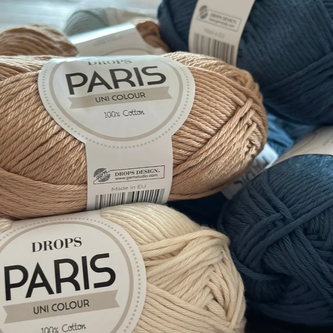- Litt over 500 g bomullsgarn fra Drops Paris.
